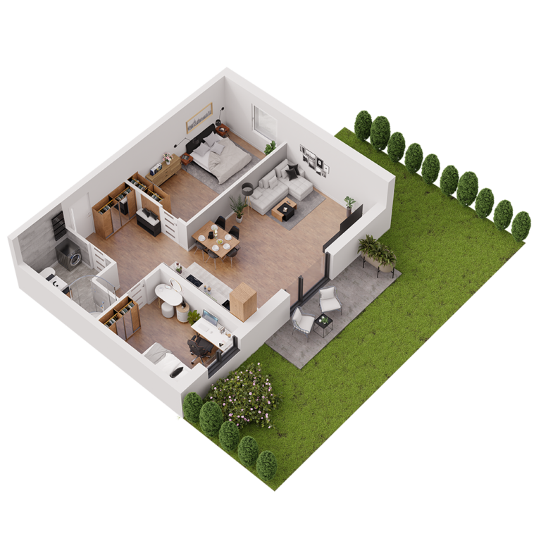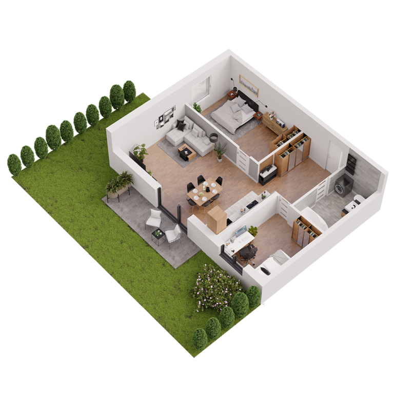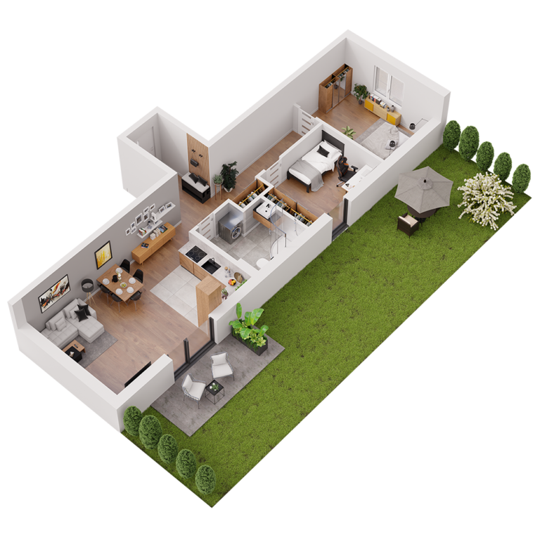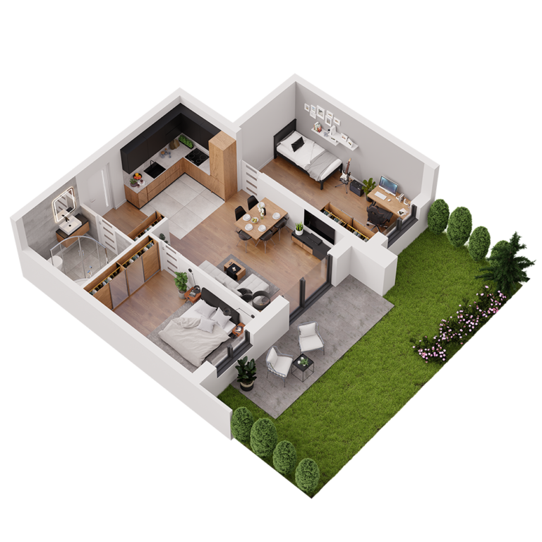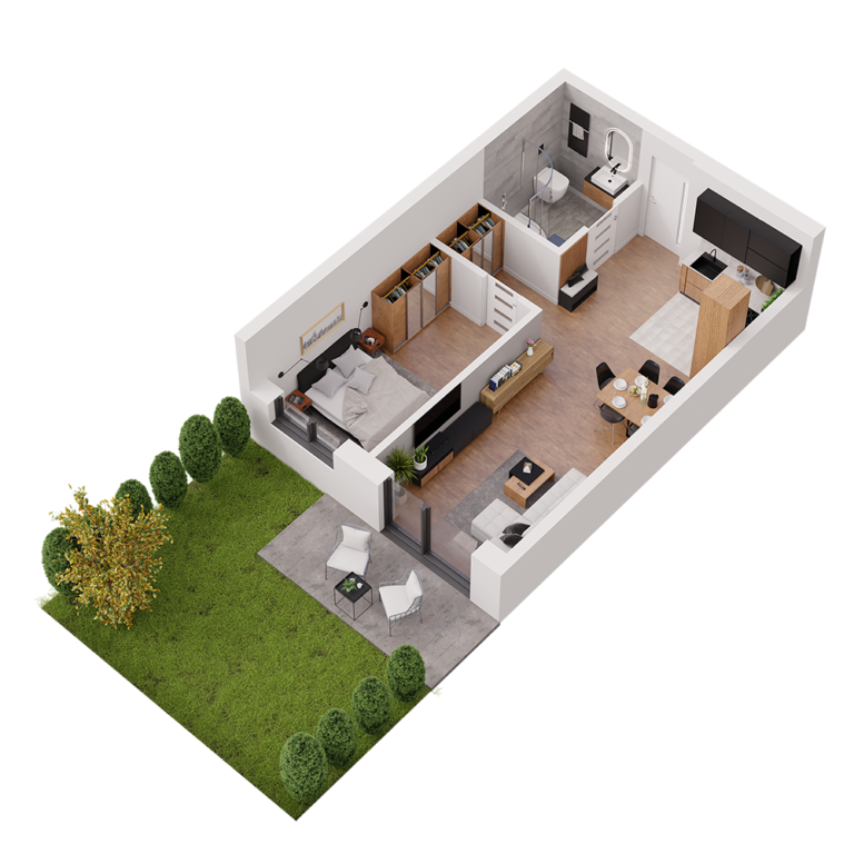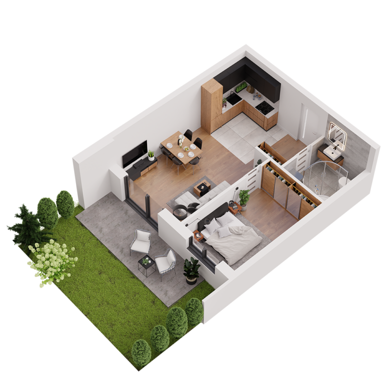 Do mieszkań na parterze przypisane są indywidualne ogródki, które stanowią idealne miejsce do relaksu i spędzania czasu na świeżym powietrzu. Pozostałe lokale posiadają przestronne balkony lub tarasy. Dzięki temu masz możliwość cieszenia się prywatną, zewnętrzną przestrzenią, niezależnie od położenia swojego mieszkania.