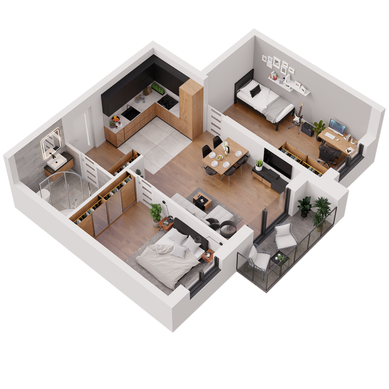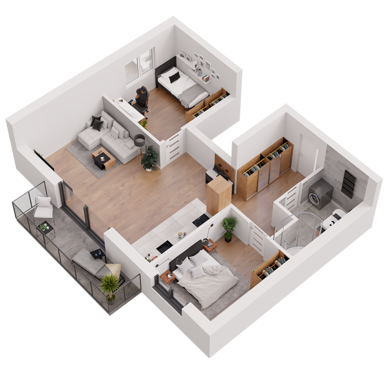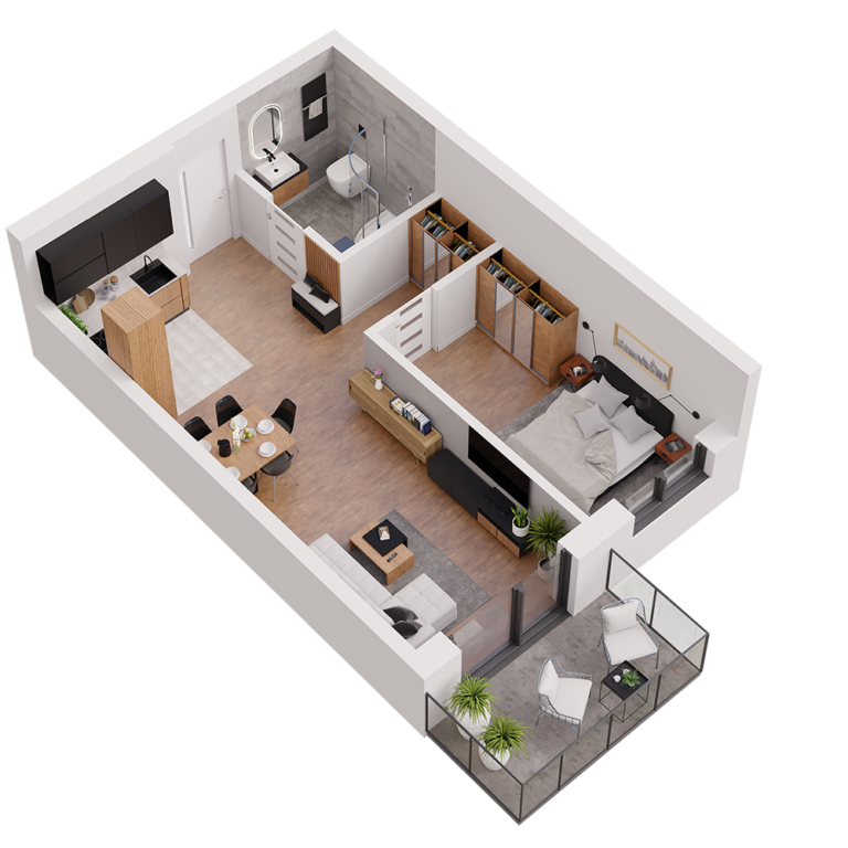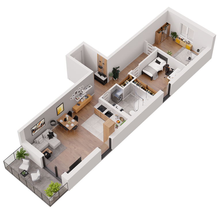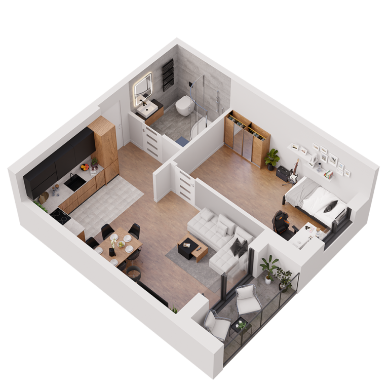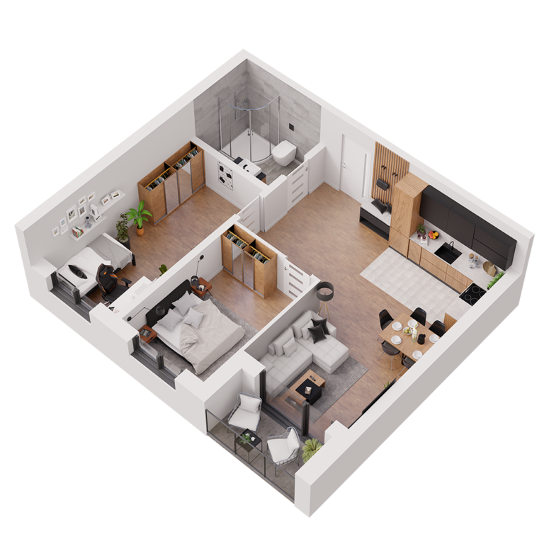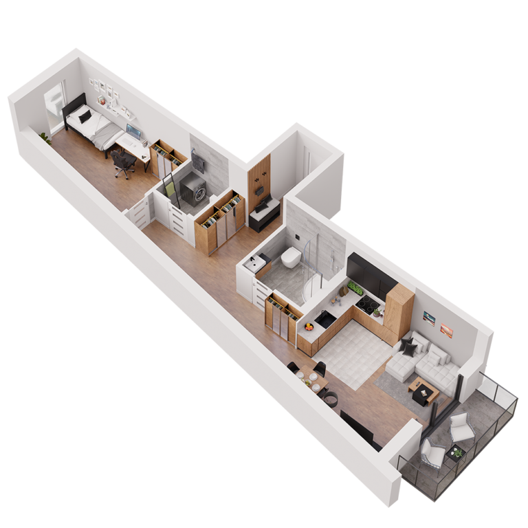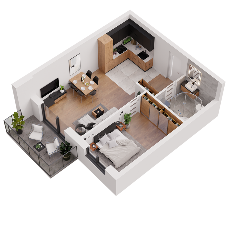 Mieszkania na Osiedlu na Leśnej oferują zróżnicowane metraże, od 39 m² do 58 m², co pozwala na znalezienie idealnego lokum dla singli, młodych par czy rodzin z dziećmi. Wnętrza zostały zaprojektowane z myślą o funkcjonalności, wygodzie i łatwej aranżacji. Dzięki dużym oknom mieszkania są pełne naturalnego światła przez większość dnia. Istnieje w nich możliwość zastosowania ogrzewania podłogowego.