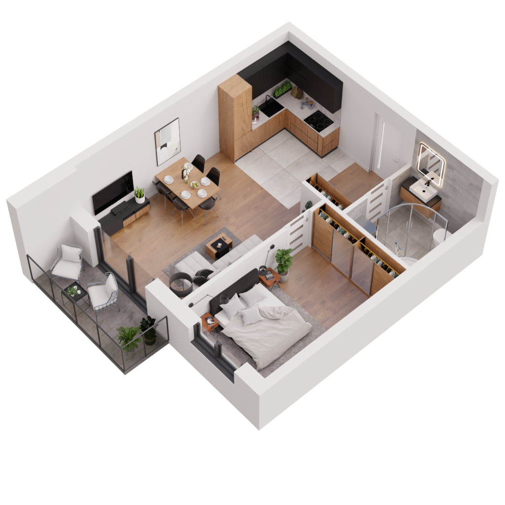 | 1.07 | 7 | 1 | 2 | 44,89m2 | 4,13m2 | Balkon/Taras | B1 | Dostępne | 293 000.00 zł